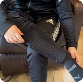 Das flexible Stretch-Material passt sich deinem Bein an, während die stoßdämpfende Wabenstruktur deine Schienbeine zuverlässig vor Druck und Reibung schützt.